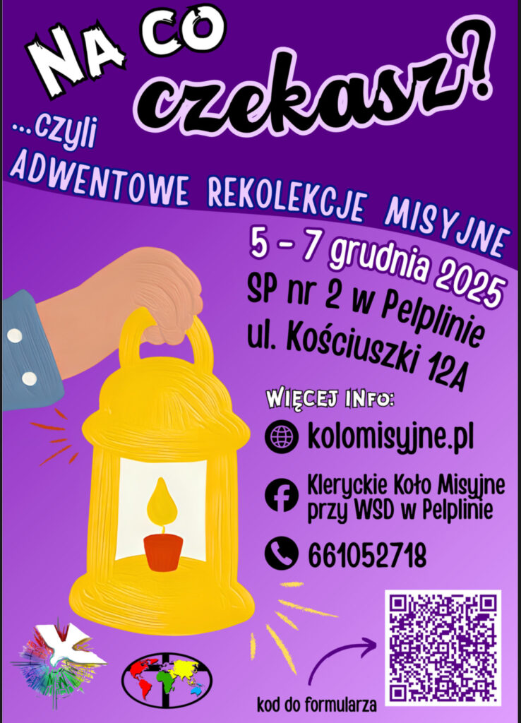 Zapraszamy na kolejne Adwentowe Rekolekcje Misyjne organizowane przez Dzieło Misyjne Diecezji Pelplińskiej i przez Kleryckie Koło Misyjne.
