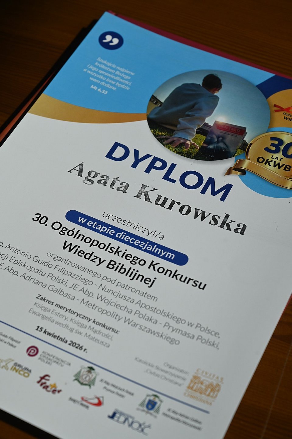 Dla uczestników przygotowano dyplomy i wyjątkowe upominki – każdy uczeń otrzymał komiks o wojennych losach ks. Stefana Wyszyńskiego „Będziesz miłował”, który niedawno został wydany przez należący do „Civitas Christiana” Instytut Wydawniczy PAX. Organizatorzy pamiętają też o katechetach, którzy z zaangażowaniem i determinacją prowadzą młodych zapraszając ich do czytania Biblii i pomagając w zgłębianiu jej treści.