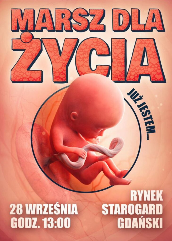 W najbliższą niedzielę, 28 września 2025 r. ulicami Starogardu Gdańskiego przejdzie XIV Marsz dla Życia pod hasłem „Już jestem”.