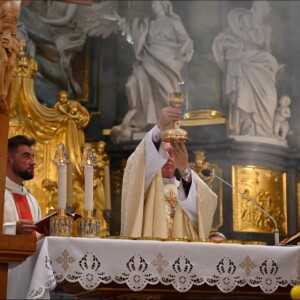Centralnym i kulminacyjnym punktem pielgrzymki była uroczysta Msza Święta w Bazylice jasnogórskiej. Liturgii przewodniczył Biskup Ryszard Kasyna, ordynariusz diecezji pelplińskiej. W swoim słowie powitania, skierowanym do maturzystów, Biskup z głęboką troską podkreślił wyjątkowość tego momentu w życiu młodych. Witał ich jako pielgrzymów, wraz z towarzyszącymi im kapłanami, nauczycielami, wychowawcami i katechetami, zaznaczając, że „Gromadzi nas Jezus Chrystus”. Hierarcha przypomniał, że stoją oni w szczególnym miejscu i w szczególnym czasie, tuż przed „kolejną jesienią i kolejną zimą” – okresem intensywnej pracy, a przede wszystkim egzaminu dojrzałości i ważnych wyborów: studiów, zawodu i powołania. W kontekście niepokoju na świecie, Biskup Kasyna zaapelował również o modlitwę o Boży pokój – w sercach, w ojczyźnie i na świecie dotkniętym licznymi konfliktami. Zachęcał, by młodzi ludzie spojrzeli na swoje życie w szerszej, Bożej perspektywie.
