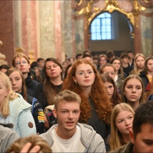 Po Mszy Świętej, w duchu integracji, młodzi ludzie zgromadzili się w auli o. Kordeckiego. Był to czas radości, wspólnej muzyki oraz wysłuchania poruszającego świadectwa Krzysztofa Sowińskiego. Znany ewangelizator, youtuber i autor podcastu „Na Werandzie” podzielił się pięknym i szczerym świadectwem swojego odkrycia Boga i przemiany w życiu, które było wcześniej pogubione. Sowiński pokazał, że autentyczne szczęście i kierunek można odnaleźć tylko wtedy, gdy swoje życiowe plany zawierzy się Chrystusowi. Pielgrzymkę zwieńczył uroczysty Apel Jasnogórski w kaplicy Matki Bożej. Całe to doświadczenie było dla ponad dwóch tysięcy maturzystów diecezji pelplińskiej głębokim umocnieniem, zawierzeniem egzaminacyjnych wysiłków i życiowych wyborów Bogu oraz Maryi. Młodzi ludzie wracali do domów z przekonaniem, że dobry Pan Bóg jest blisko ich życia.