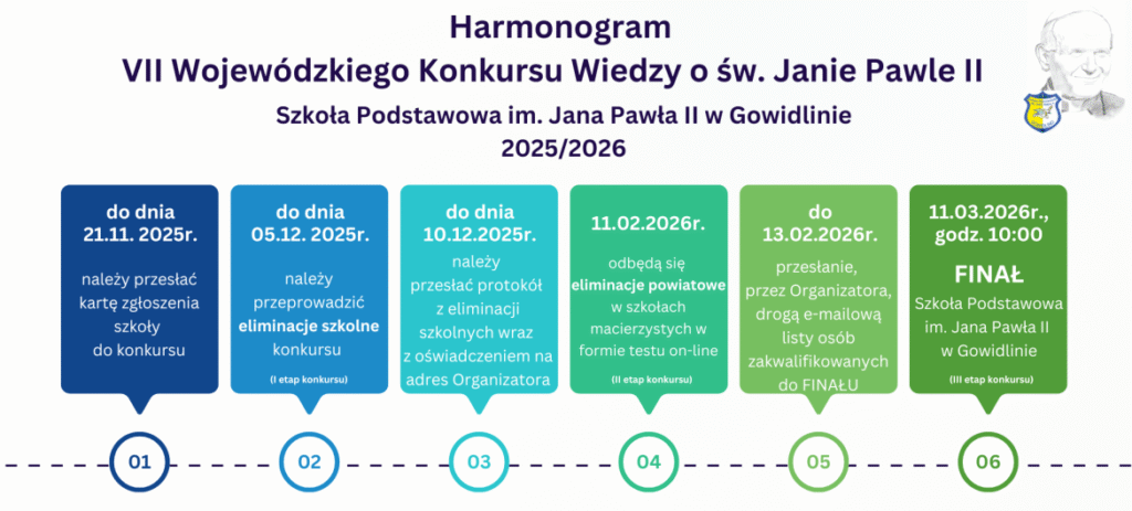 Kierujemy do Państwa zaproszenie do wzięcia udziału w VII Wojewódzkim Konkursie Wiedzy o św. Janie Pawle II. Tym konkursem chcielibyśmy w szczególny sposób uczcić pamięć Patrona naszej szkoły.