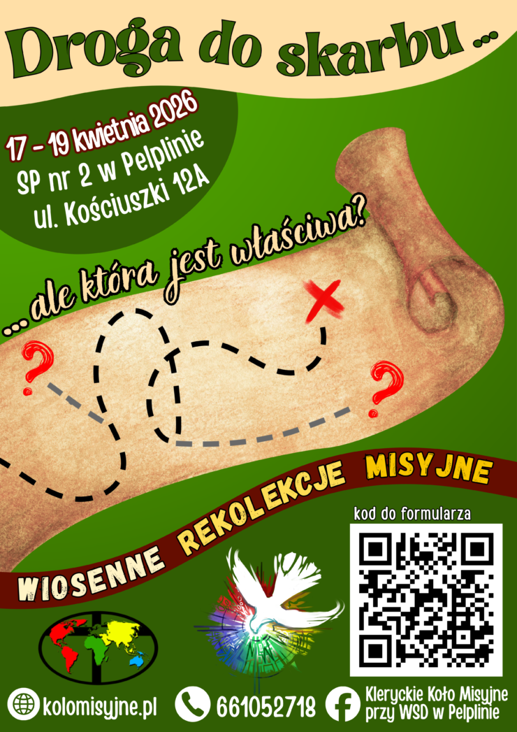 - Rekolekcje będą odbywały się w dniach od 17 do 19 kwietnia 2026 roku w Pelplinie (adres: Szkoła Podstawowa nr 2 w Pelplinie, ul. Kościuszki 12A)