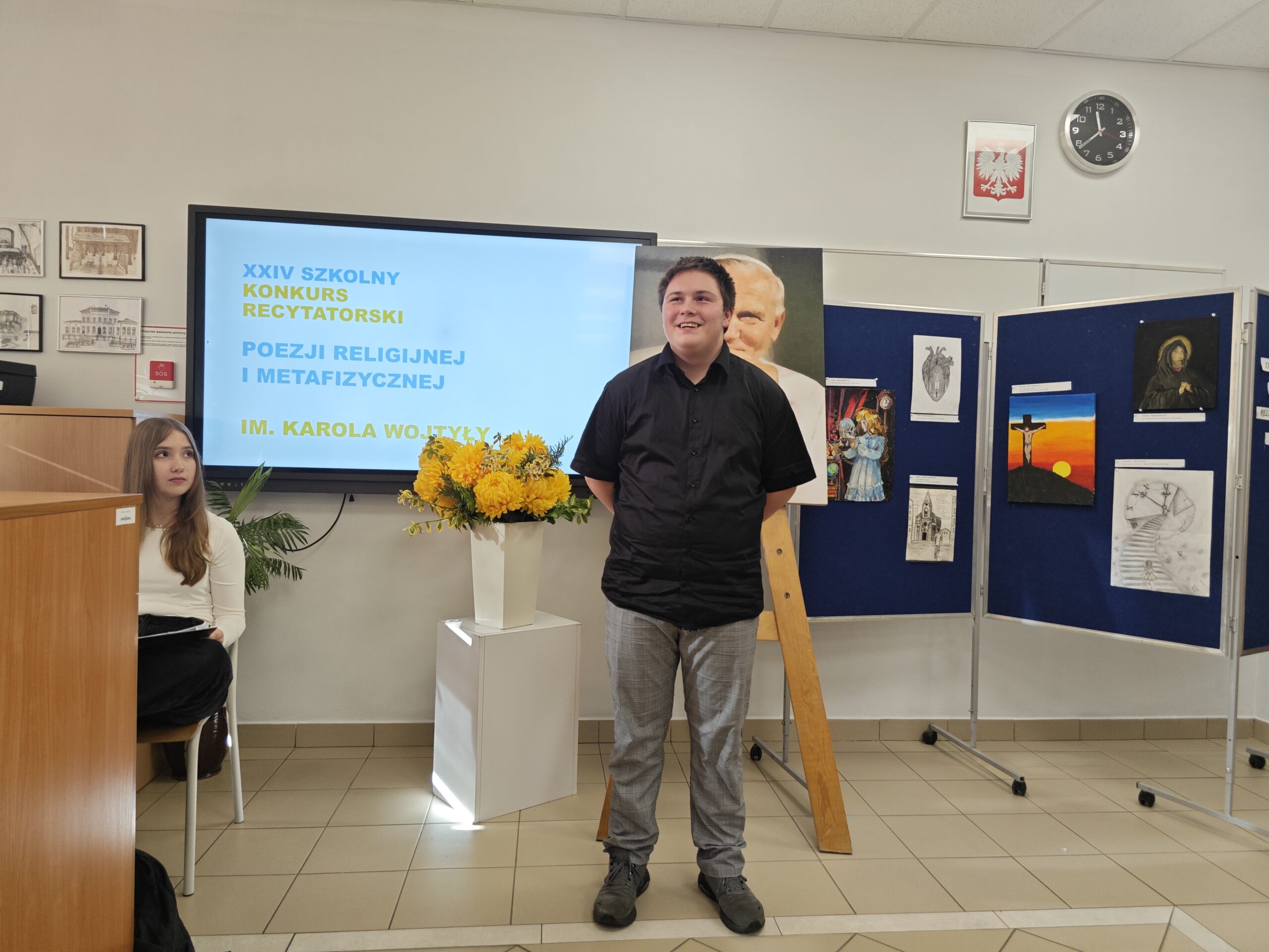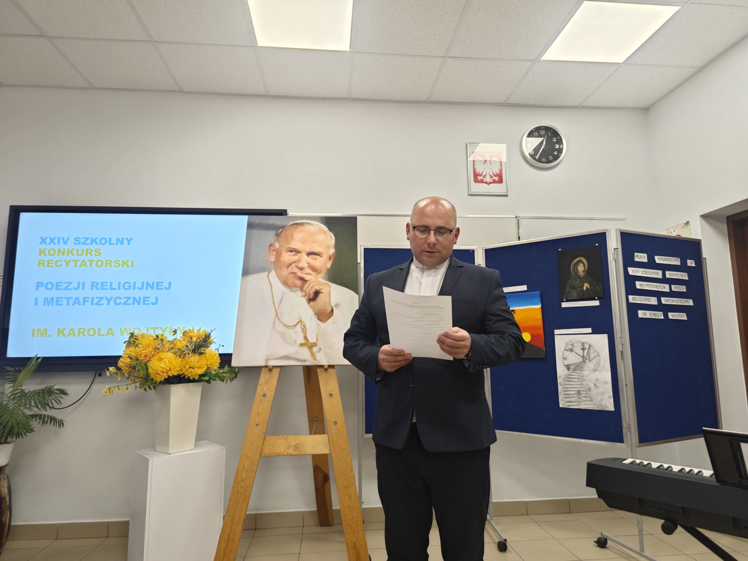31 października 2025 r. w murach Zespołu Szkół Ekonomicznych w Starogardzie Gdańskim odbył się XXIV Szkolny Konkurs Recytatorski Poezji Religijnej i Metafizycznej im. Karola Wojtyły. Wydarzenie, które już na stałe wpisało się w kalendarz życia kulturalnego Kociewia i Diecezji Pelplińskiej, było prawdziwym świętem słowa, wiary i młodzieńczego entuzjazmu.