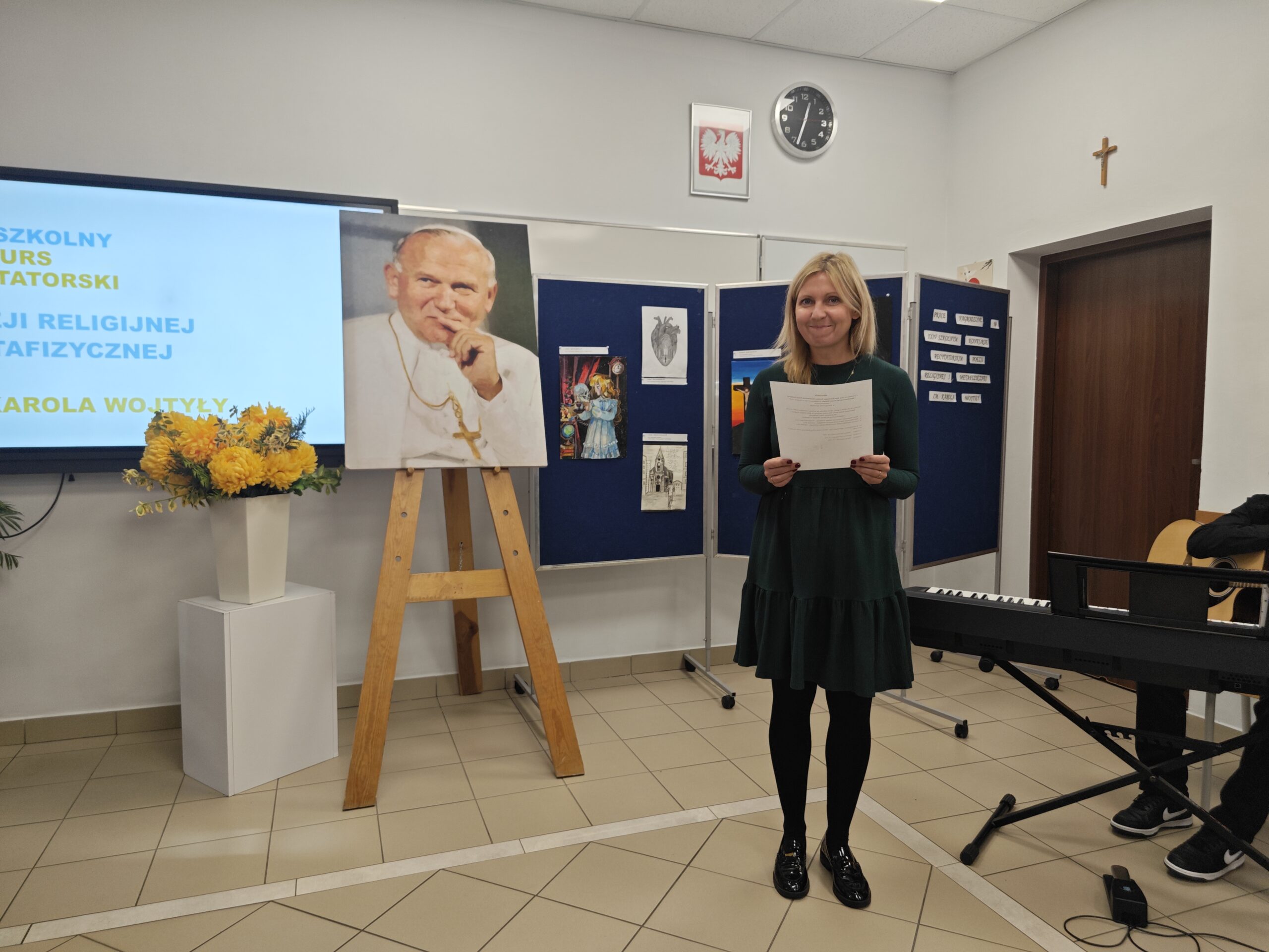 Organizatorem konkursu, z wielkim zaangażowaniem i sercem, jest pani Ewa Balcerzak – polonistka z ZSE w Starogardzie Gdańskim, która od lat troszczy się o rozwój talentów artystycznych uczniów. Tegoroczna edycja zgromadziła młodych uczestników, którzy w piękny sposób podjęli wyzwanie zgłębiania oraz prezentowania poezji o tematyce duchowej i ponadczasowej, czerpiąc inspirację z dorobku św. Jana Pawła II – Karola Wojtyły.